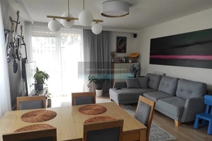 -Salon połączony z kuchnią - jasna, otwarta przestrzeń z wyjściem na balkon, idealna do codziennego życia i spotkań z rodziną.