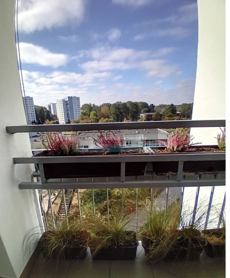 Budynek i klatki schodowe po remoncie. Teren wokół budynku otoczony zielenią, zadbany. Z okien mamy widok na panoramę Tarchomina.