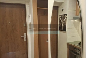 - korytarza z częścią "przedpokojową" z dużym wieszakiem, częścią na buty i pawlaczem oraz nowoczesnym aneksem kuchennym w zabudowie,