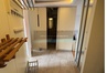 Budynek po termomodernizacji, wejście na klatkę zabezpieczone domofonem.