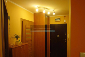 Przedpokój jest wyposażony w szafę Komandor oraz szafkę na buty.