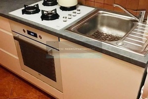 - Kuchnia (ok. 6 m2), pełna zabudowa kuchenna, lodówka, płyta gazowa, piekarnik, pralka.