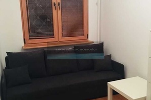 - Mały pokój (ok. 9 m2), rozkładana sofa, szafa ubraniowa, komoda, stolik.