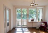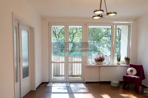 Mieszkanie jest dwustronne, okna wychodzą na zielone podwórka - kuchnia i łazienka na północ, salon i sypialnia na południe.