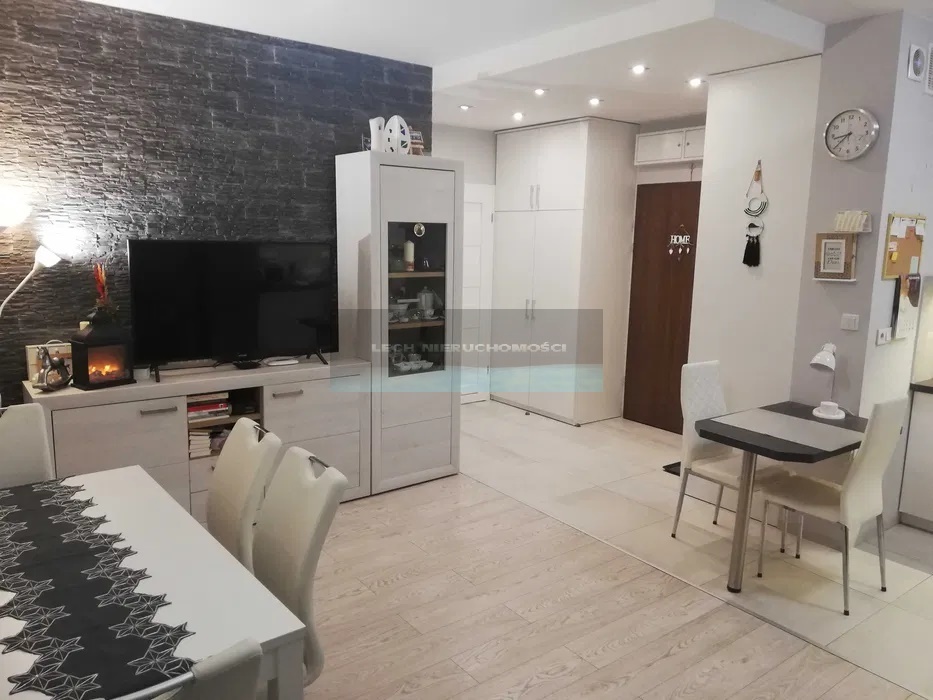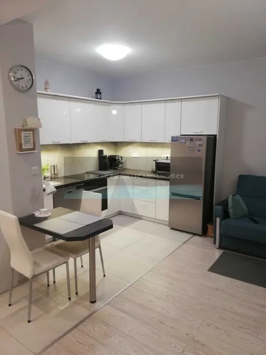 Mieszkanie jest widne i bardzo ciepłe, ma okna na stronę wschodnią z widokiem na zielone patio osiedla. Jest ono wykończone w wysokim standardzie z dbałością o każdy szczegół. W pokojach położone są panele o klasie AC4 w kolorze jasnoszarym. W korytarzu, aneksie kuchennym i łazience położony jest gres w kolorze jasnoszarym. W oknach zamontowane są rolety termiczne oraz moskitiery. Pozostawiamy w pełni wyposażony aneks kuchenny szafki wykonane na wymiar (biały półmat), sprzęt kuchenny lodówka Indesit, okap podszafkowy, płyta indukcyjna i piekarnik elektryczny Whirlpool, zmywarkę Mastercook. Pomiędzy szafkami znajduje się gres szkliwiony podświetlony listwą LED. W korytarzu znajdują się dwie szafy wykonane na wymiar.