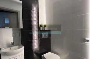 8) Na posadzce kuchni, łazienki oraz balkonu gres z górnej półki natomiast na ścianach łazienki glazura wysokiej jakości - biała polerowana oraz czarna strukturalna.