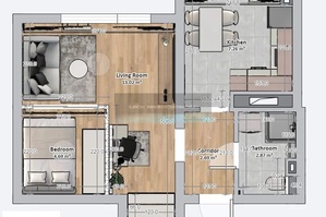 Jest to unikatowe mieszkanie na rynku nowodworskim ze względu na wydzielenie strefy sypialnianej na powierzchni użytkowej mieszkania wynoszącej 31,30m2 gdzie znajduję się jeszcze salon, kuchnia, przedpokój i łazienka.
