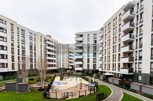 Apartament usytułowany jest na 2 piętrze, z dala od ulicy, a okna obu sypialni wychodzą na najcichszą część pięknego zielonego patio w pięknym i nowoczesnym apartamentowcu o podwyższonym standardzie.