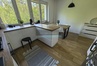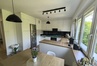 otwartą kuchnię z jadalnią (nowe meble, kuchenka, płyta gazowa, okap)