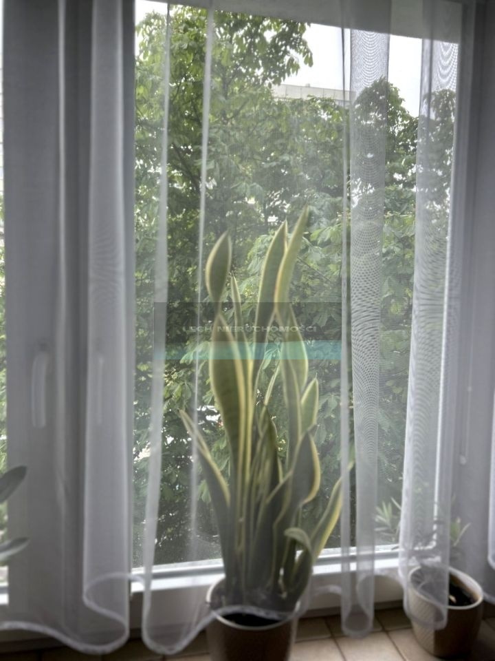 A jednocześnie cisza i zieleń, bo blok jest odsunięty od ulicy, od strony balkonu znajduje się szeroki pas wysokich drzew. Dużo zieleni też z przodu bloku, w świetle okien dwa kasztanowce. W szczycie bloku nowoczesny miejski plac zabaw (trampoliny, park linowy).