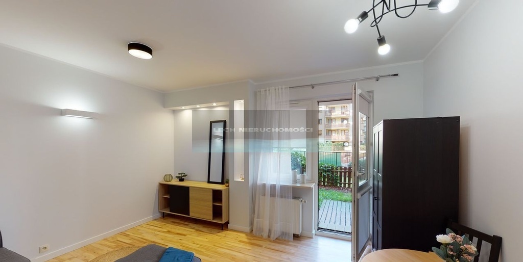 - Salon z wyjściem na prywatny ogródek