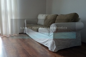 Mieszkanie wyposażone w podstawowe sprzęty i meble. W aneksie kuchennym są meble, zmywarka, okap i kuchenka mała płyta elektryczna. Na podłodze są panele. Mieszkanie widne, słoneczne, do wprowadzenia się.