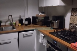 - kuchni z meblami na wymiar - w pełni wyposażonej w sprzęt AGD (lodówka, piekarnik, płyta gazowa, zmywarka),