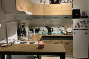 - pokój dzienny z aneksem kuchennym, łazienka z wanną oraz przedpokój.