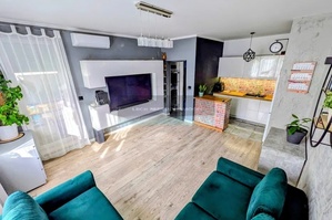 - Przestronny salon (24 m2) z wyjściem na 10 m2 loggię z markizą