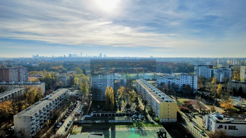 Widok z okien na panoramę centrum Warszawy i tereny zielone Bielan