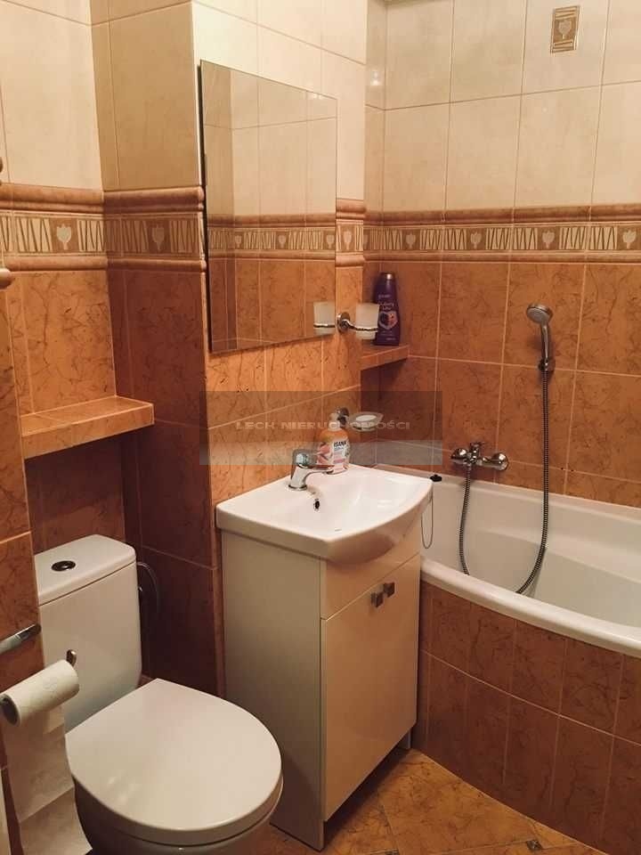 - Łazienka z narożną wanną (ok. 3 m2), szafka z umywalką, lustro.