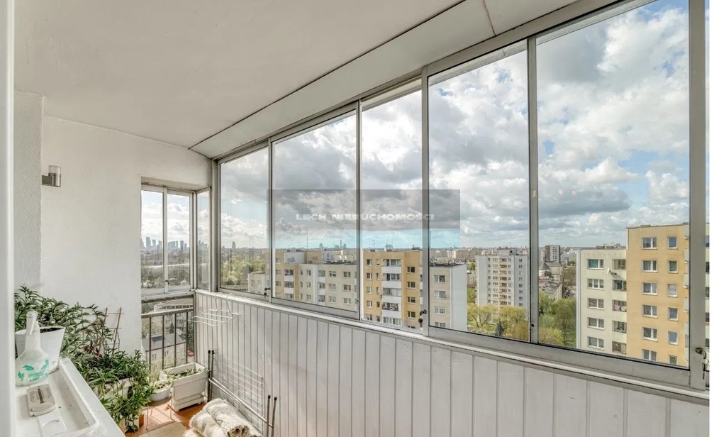 4 pokoje, oddzielna kuchnia, łazienka, oddzielne wc oraz przedpokój. Dodatkowo schowek. Ekspozycja okien na południowy zachód, co sprawia ze mieszkanie jest jasne /słoneczne. Piękna panorama Warszawy, aż po Pałac Kultury.